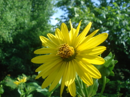 Es handelt sich um eine mehrjährige, winterharte Staude, einen Korbblütler. Sie wird bis zu drei Meter hoch, blüht gelb wie kleine Sonnenblumen und ist ab dem zweiten Jahr, wenn sie gut eingewachsen ist, äußerst trockenheitsverträglich.