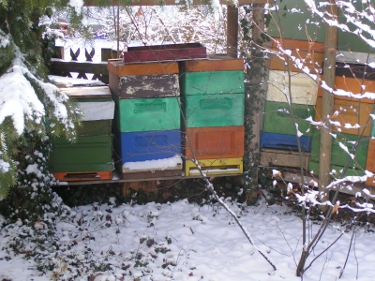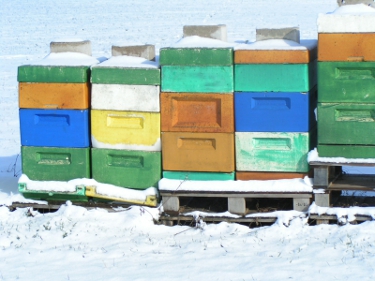 Ab dem Zeitpunkt der Wintersonnwende, also ca. ab Weihnachten, beginnt die Königin wieder mit der Eiablage, ausgelöst durch spezielle Fütterung durch ihren "Hofstaat". Diese Eier müssen für die Dauer von 21-25 Tagen auf ca. 35°C gewärmt und die Laven gefüttert werden. Das kostet viel Energie, die die Bienen einerseits von angefressenen Fettpolstern vom Herbst (deshalb sind Winterbienen größer/fetter als Sommerbienen), den Pollenvorräten, die auch noch im Herbst eingelagert werden und vom Honig beziehen. Je mehr Eier/Brutzellen belegt sind, desto mehr Fläche muß gewärmt werden. So kann der Futterverbrauch pro Woche auf über 1kg pro Bienenvolk steigen.